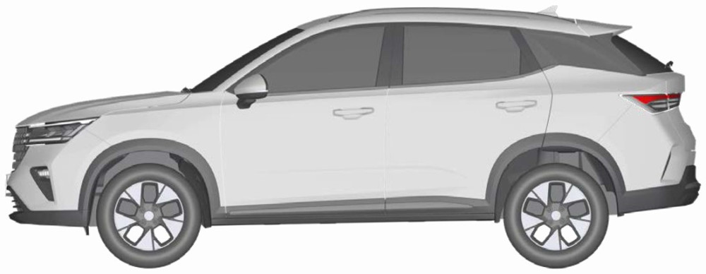 側(cè)面來看,新車的整體輪廓以及車身比例也與五菱星辰十分相似,只是全新SUV的D柱角度要更大一些。輪圈將采用全新造型,另外采用隱藏式B/C/D柱設(shè)計。