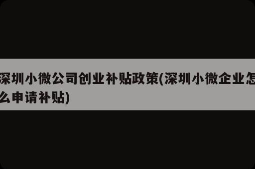 本篇文章給大家談?wù)勆钲谛∥⑵髽I(yè)怎么申請(qǐng)補(bǔ)貼,以及深圳小微公司創(chuàng)業(yè)補(bǔ)貼政策對(duì)應(yīng)的知識(shí)點(diǎn),希望對(duì)各位有所幫助,不要忘了收藏本站喔。