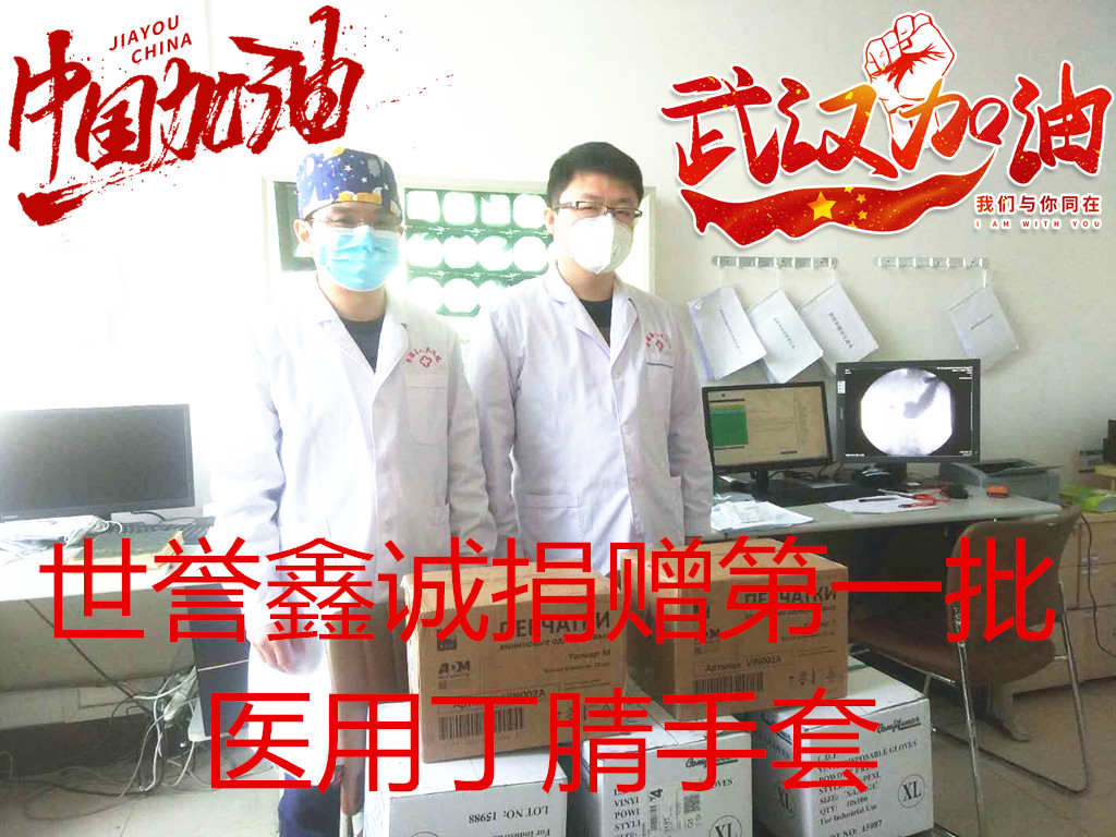自疫情爆發以來,世譽鑫誠人一直關注前線醫護的消息,全體同事想盡各種渠道盡力搜集物資,并積極聯系其他企業負責人,號召大家一起努力為前線醫護提供幫助。昨日,世譽鑫誠已經將符合醫用標準的第一批醫用丁腈防護手套(5000只)送至河北棗強縣人民醫院,為抗疫前線提供援助,公司也在積極的進行第二批醫用物資的采購,同時大家也在通過各種渠道奉獻著自己的一份愛心。